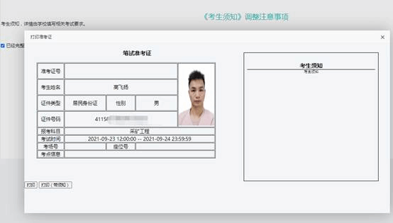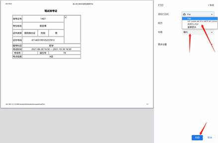 2、出现打印准考证弹窗 点击打印