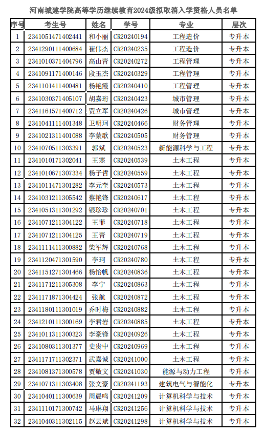 附:beats365官网入口高等学历继续教育2024级拟取消入学资格名单
