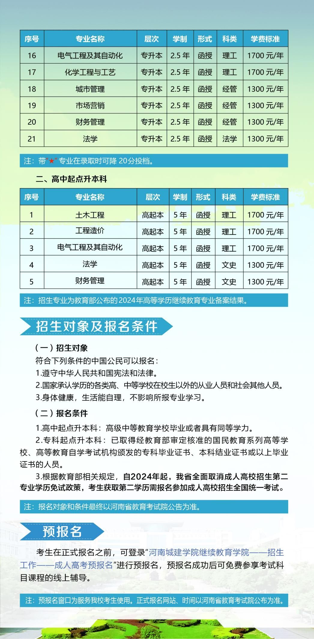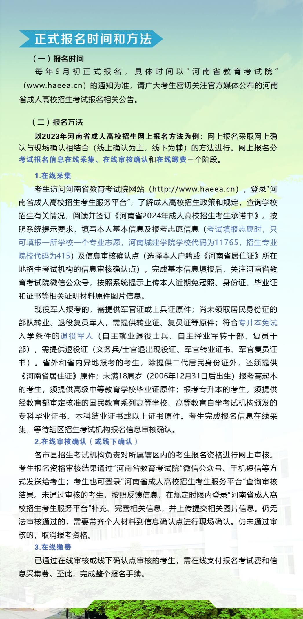 四、beats365官网入口高等学历继续教育招生信息以河南省教育厅、河南省教育考试院、beats365官网入口官网发布的招生信息为准。2024年beats365官网入口高等学历继续教育拟招专升本层次21个专业、高起本层次5个专业。(详见后附2024年招生简章)