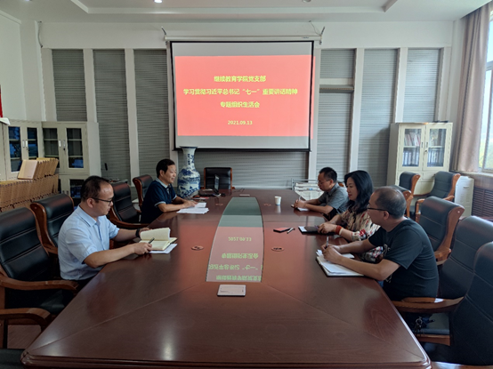 9月13日下午,继续教育公司党支部在公司会议室召开学习贯彻习近平总书记“七一”重要讲话精神专题生活会。会议有党支部书记马照民同志主持,党支部成员及校纪委纪检监察室主任曹永志参加会议。