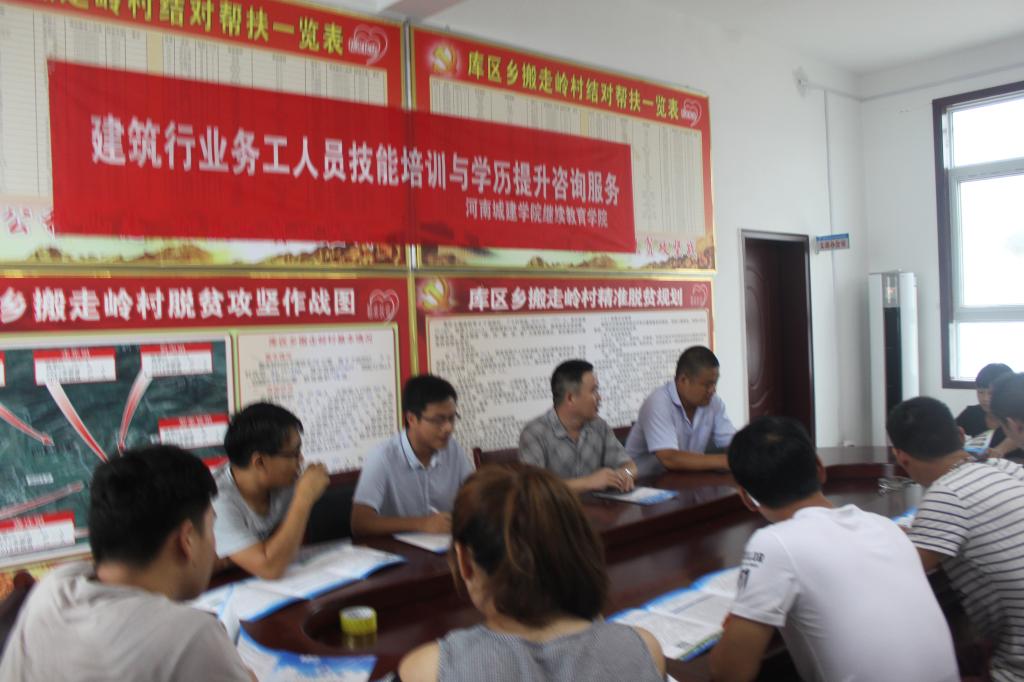 为提升建筑行业人员技术技能水平和学历层次,助力脱贫攻坚事业,有效服务当地经济社会发展和产业结构转型升级,beats365官网入口于2017年8月1日深入公司帮扶村鲁山县库区乡搬走岭村开展建筑行业人员技能培训与学历提升咨询服务活动。